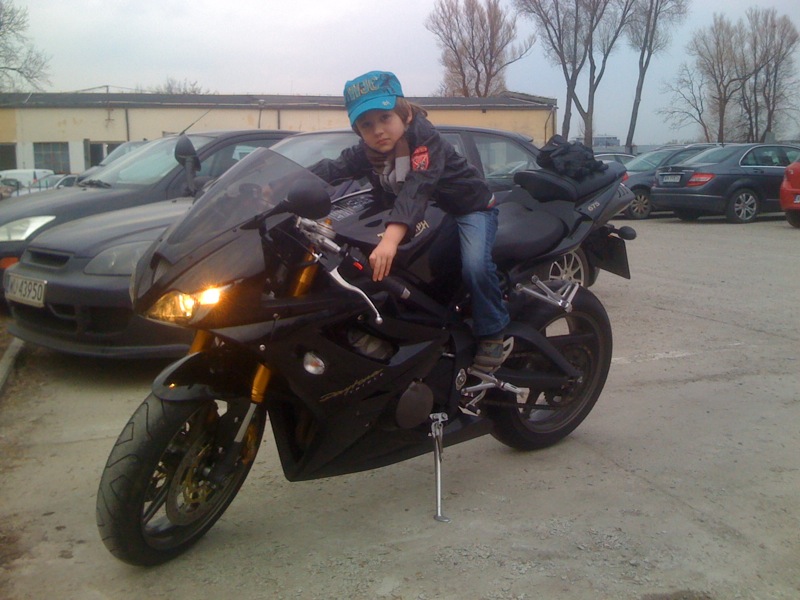 Potem przyjechała po mnie Minia z Mikołajem. Młody miał na sobie kurtkę motocyklowa więc mu Rychu pozwolił trochę pojeździć. ;)