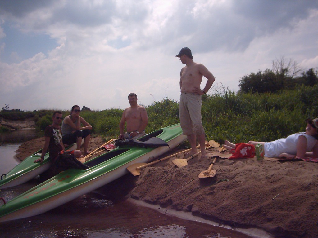 Były trzy załogi: Jolka z Piotrkiem, brat byłej żony takiego grubego aktora co go nikt nie lubi z żoną w ciąży oraz my. Miki i Antoś zostali przejęci przez dziadków. Spływ wyszedł znakomicie ale skończył się za szybko. Marzy mi się jakaś dłuższa przygoda z kajakiem, no ale to może w przyszłym roku.