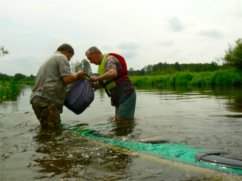 Ponad pół godziny trwało wydzieranie kajaka z pod wody. Naciągnąłem ścięgna i mięśnie, bolą jeszcze dziś, ale łódkę wyrwaliśmy żywiołowi.