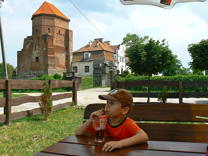 Mimo wszystko zapakowaliśmy bambetle i chłopaków do Saabika (chwała mu bo dobrze działa!) i wyruszyli w stronę rzeczki Liwiec. Pod zamkiem w Liw zjedliśmy frytki i o mało co nie przewrócił się na nas parasol Żywca tak wiało.