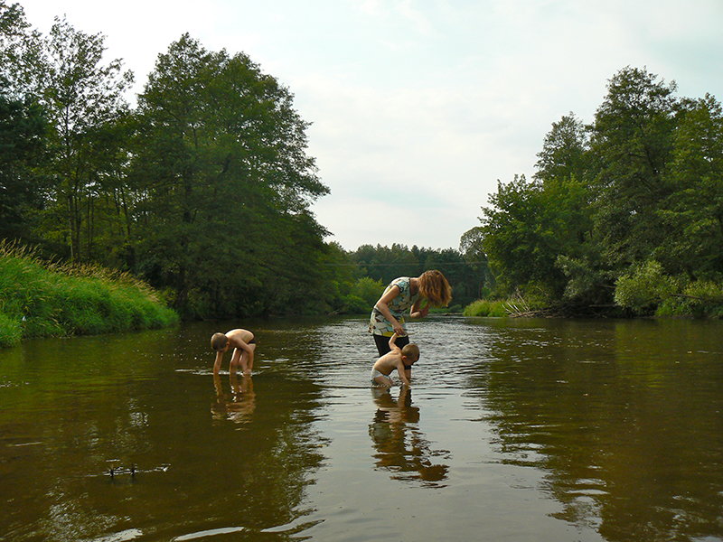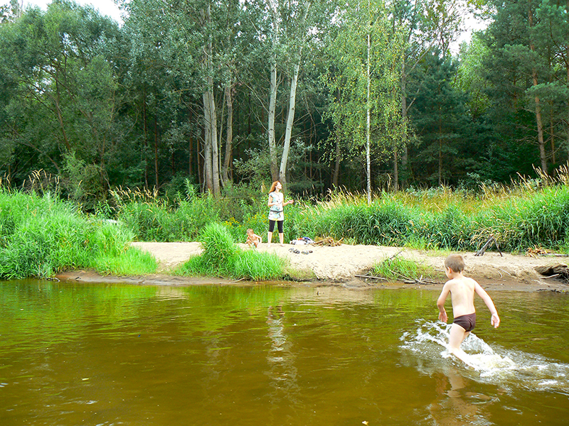 Gdzieś za Urlami skręciliśmy w leśną drogę, minęli dom sołtysa i zostawiając samochód na końcu ścieżki, ruszyli w poszukiwaniu Liwca. Znalazł się, i znalazła się też mała plaża.