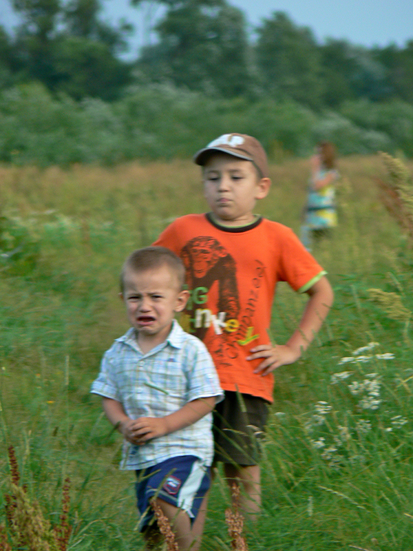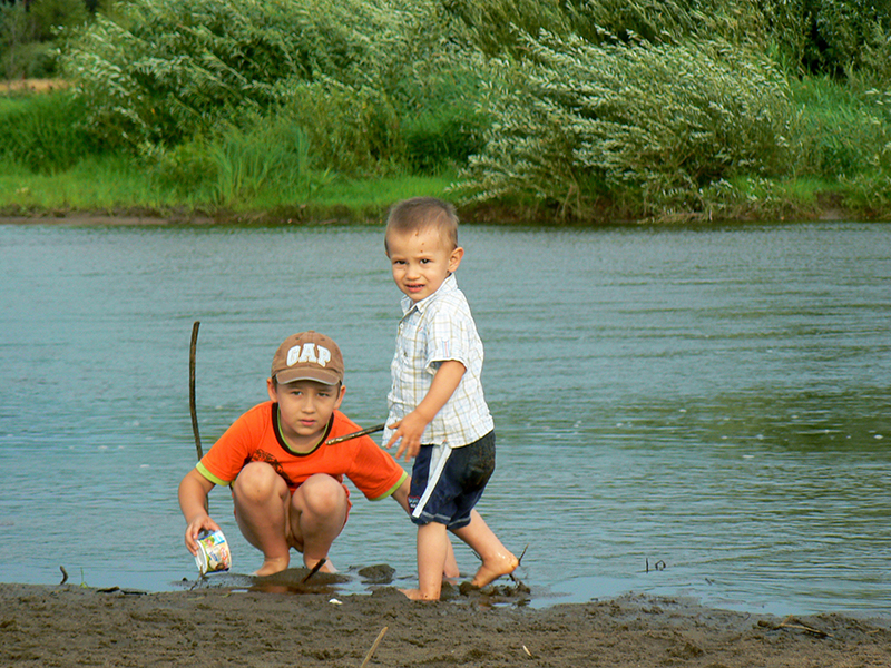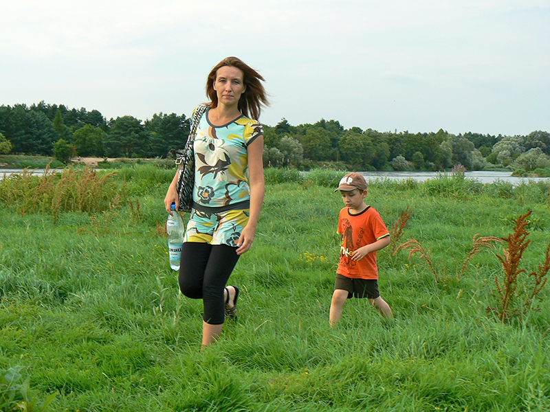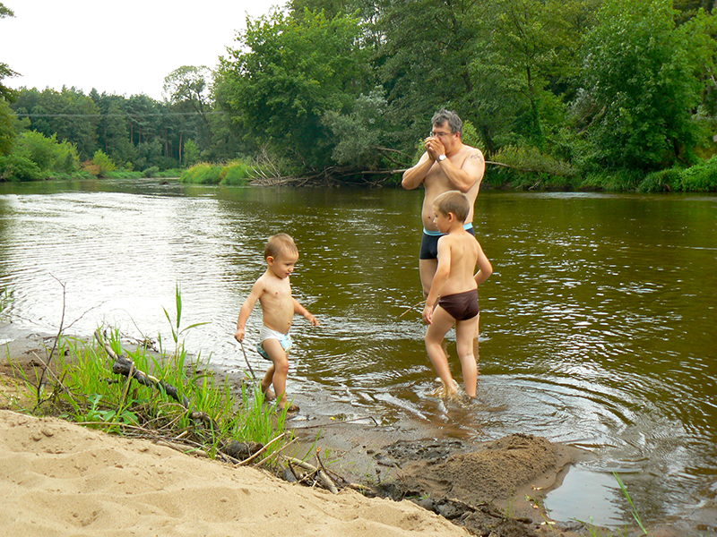 ...przez rozległą łąkę aż na brzeg rzeczki. A tam była piękna plaża z której znowu skorzystali chłopcy.