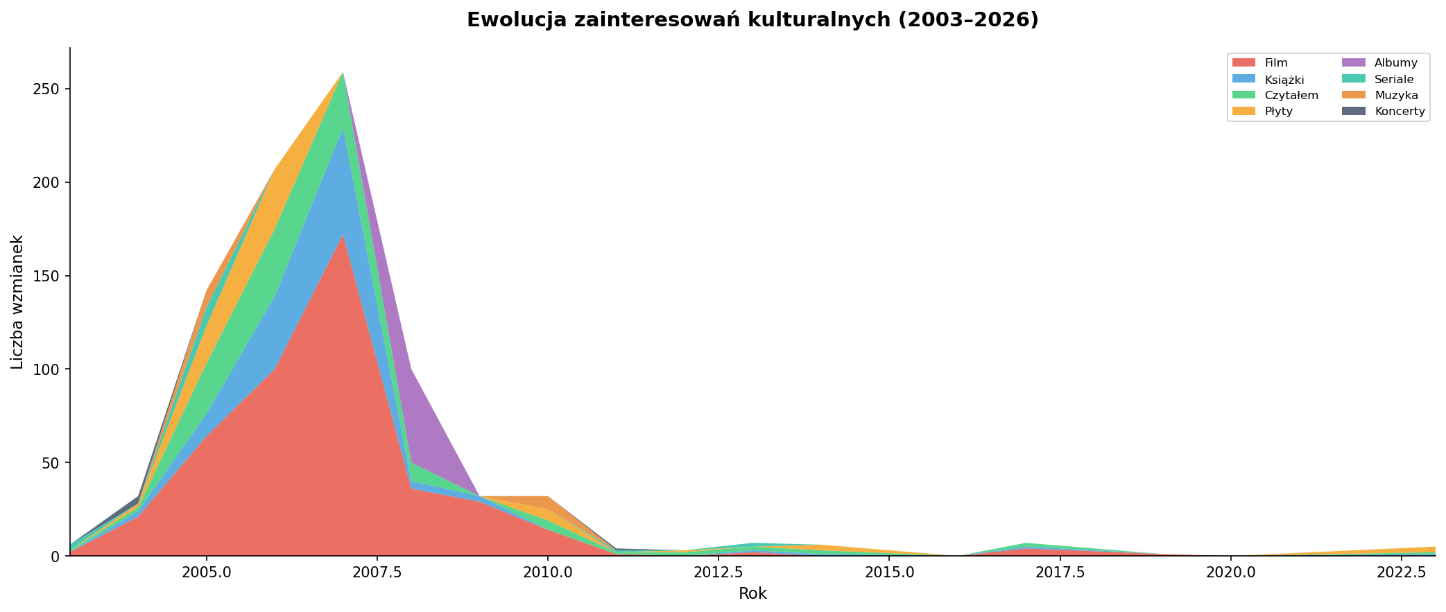 Poniżej analiza oparta wyłącznie na treści wpisów (bez tagów i metadanych), obejmująca lata 2003–2026.