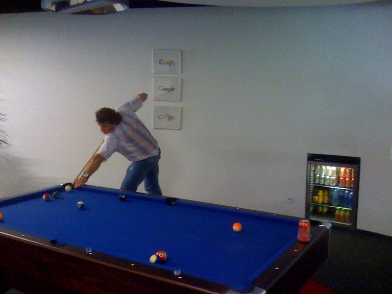 Wczoraj byliśmy z K. we Wrocławiu na szkoleniu w Guglu. Biuro może robić wrażenie na kims kto nie pracował w Ahoju. Ha ha! No bo kuchnia wielkości boiska do kosza, wypełniona po brzegi darmowymi drinkami i "płaskim żarciem". Do tego openspejs, już zupełnie jak z Ahoja, i sala konferencyjna z fotelami prawie lotniczymi. Im wyżej się siedzi tym gorzej się spada. I tak zawsze zaczyna brakować mleka do kawy albo srajtaśmy.