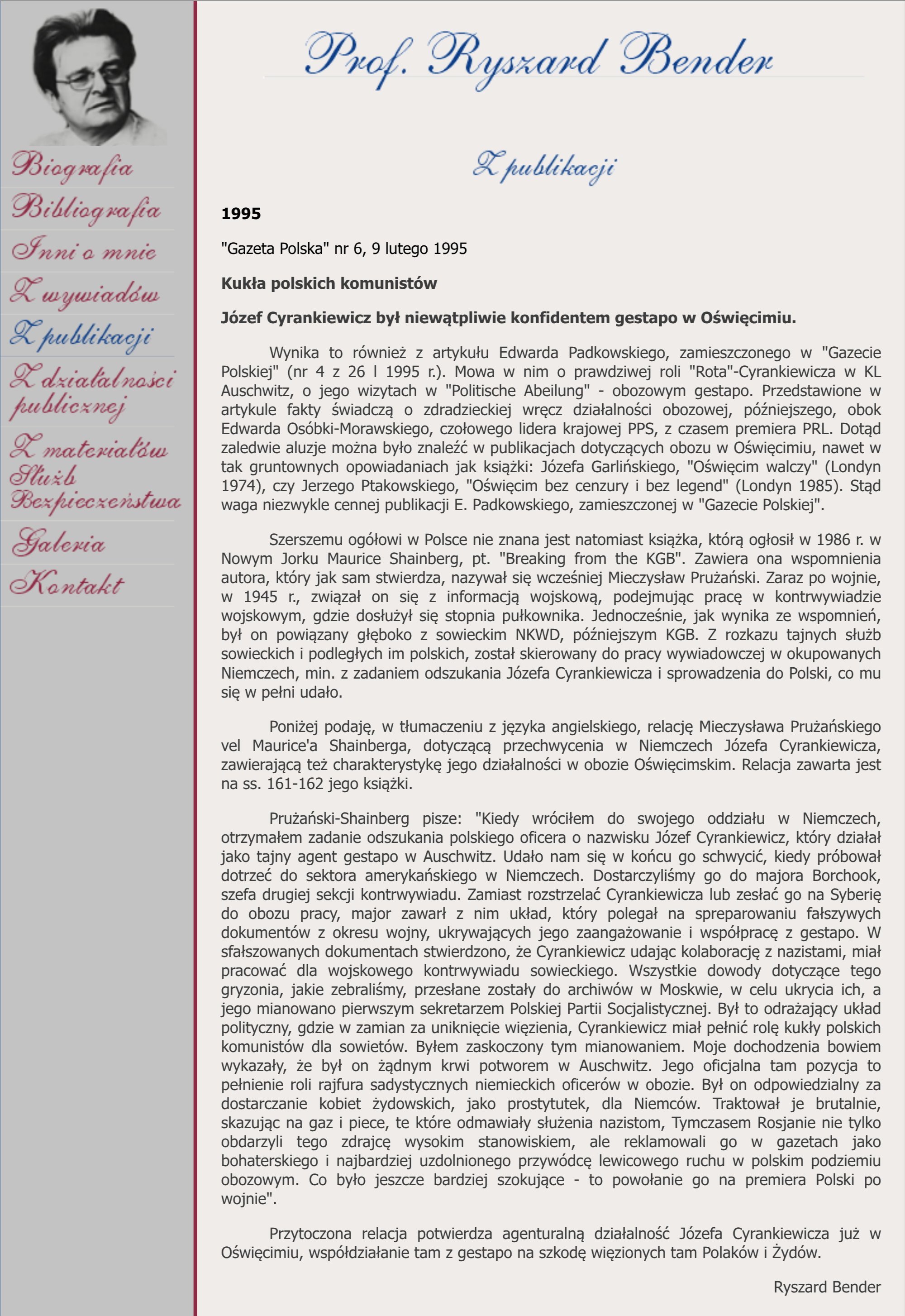 Adnotacja z 2026: zachowałem też artykuł prof. Bendera, bo nigdy nic nie wiadomo...
